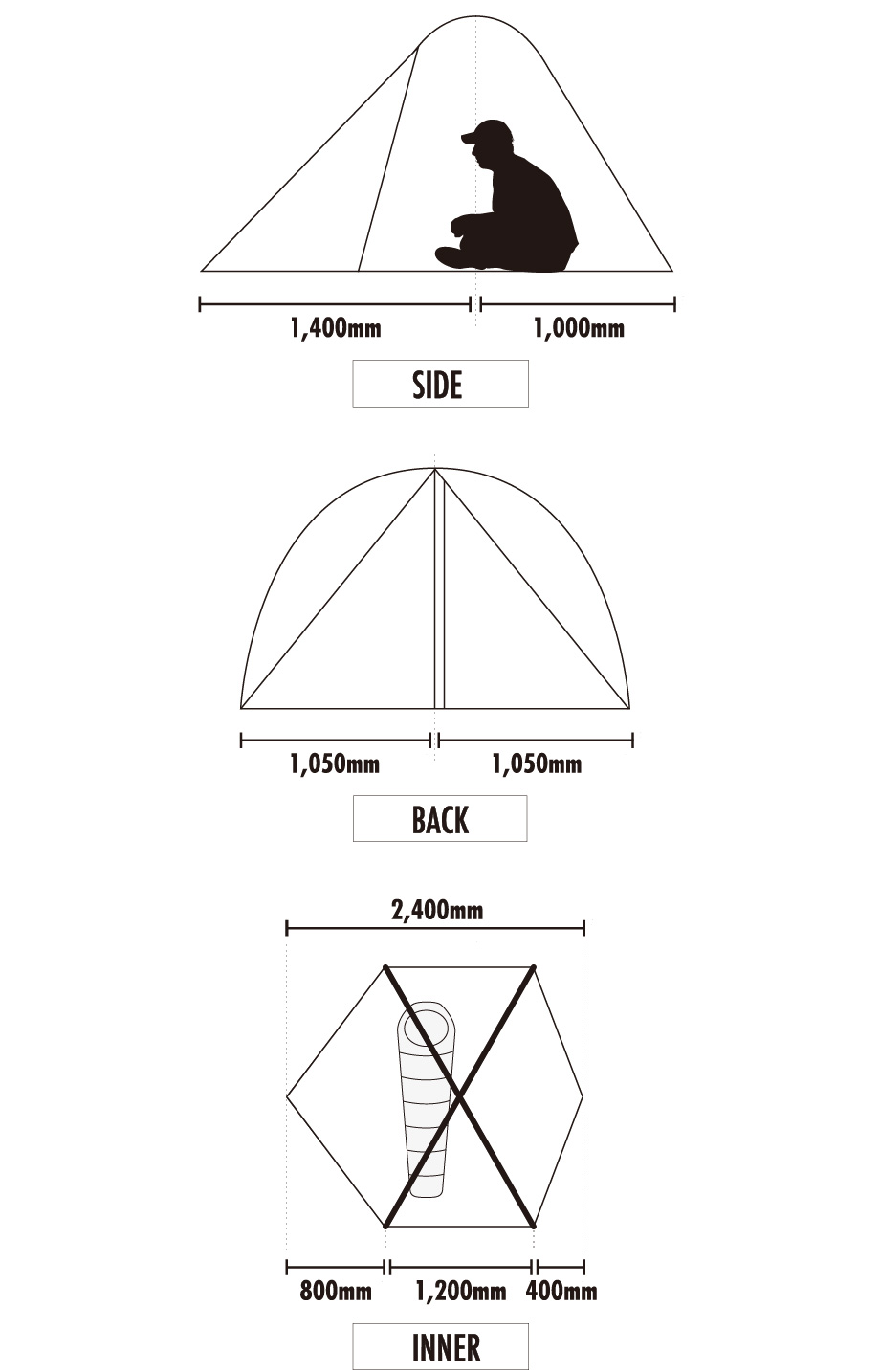 | 材質 | 天幕 :防水加工ポリエステル 65D 裏面 :PUコーティング(耐水圧 3,000mm) 床シート:ポリエステル 210D(耐水圧 3,000mm) |